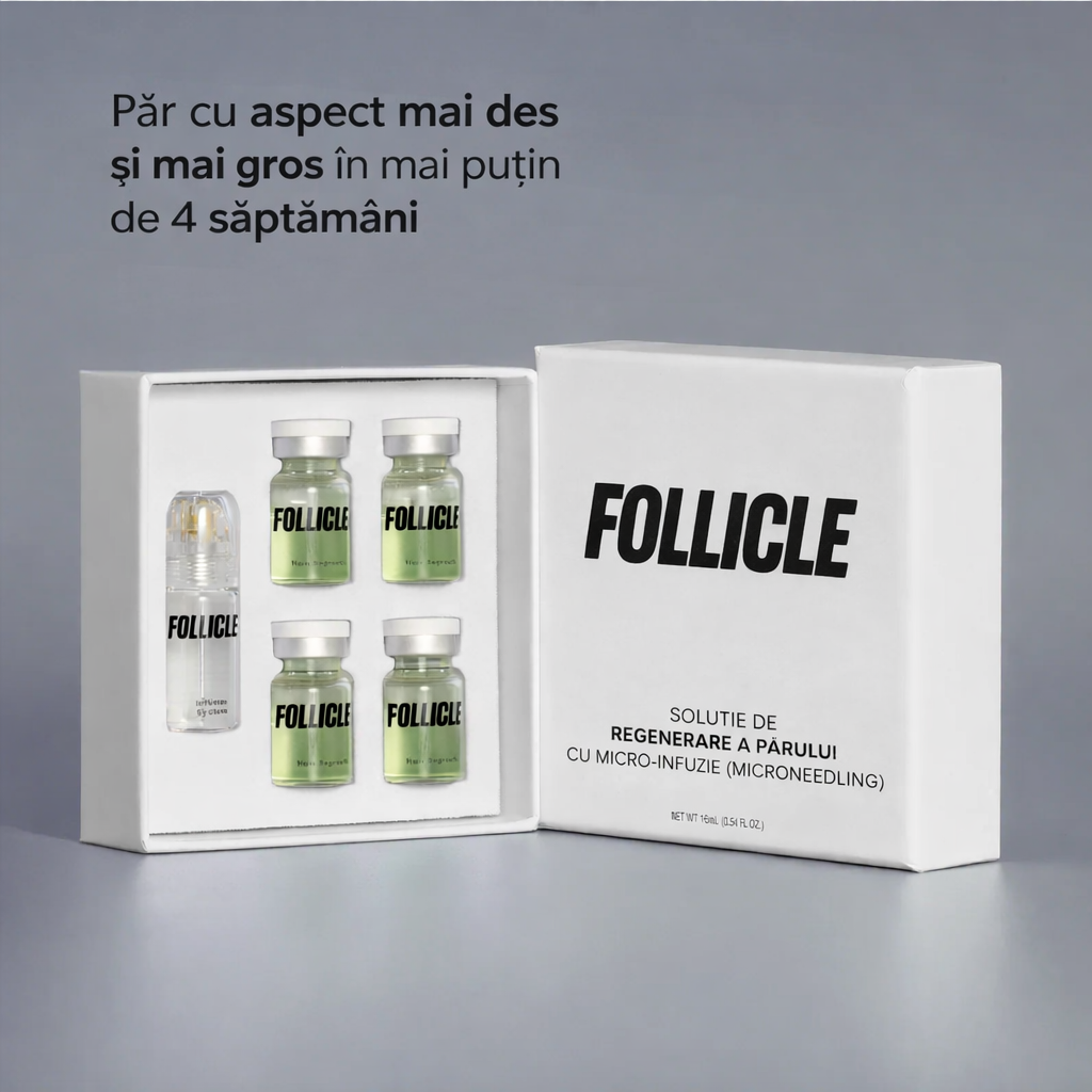Follicle livreaza ingrediente puternice pentru regenerarea parului direct la nivelul scalpului, folosind tehnologia avansata de micro-infuzie. Stimuleaza foliculii si imbunatateste sanatatea scalpului, ajutand la obtinerea unui par mai des si mai bogat.